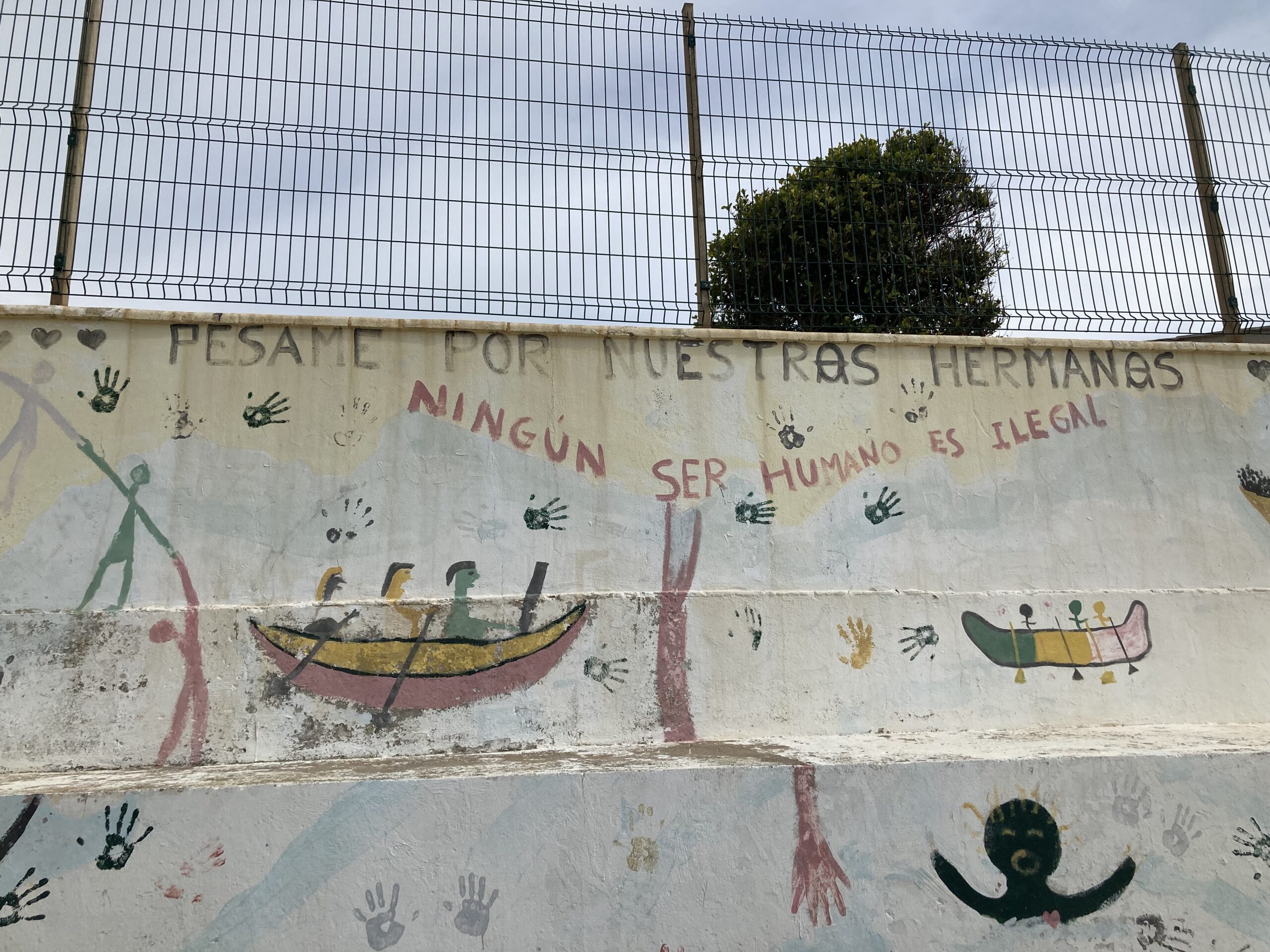 Migrant solidarity street art in a Spanish coastal town. Photo by Wendy Vogt
