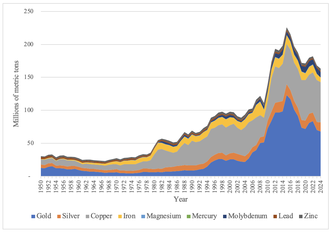 Figure 1. Rates of Metallic-Mineral Extraction in Mexico, 1990-2024
